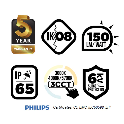- Certifications: CE, EMC, IEC60598